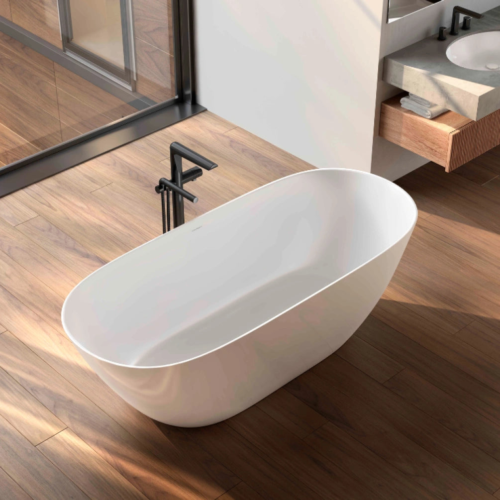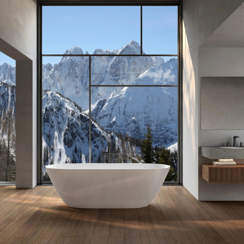 The Lussari comes in All Sizes. Its slim, curved edges are not only visually appealing but also provide a more generous bathing area. Choose between the signature Quarrycast White gloss finish or the ultra-stylish Quarrycast Matt. Pair it with the Lussari 55 countertop basin for a beautifully coordinated look throughout your bathroom.